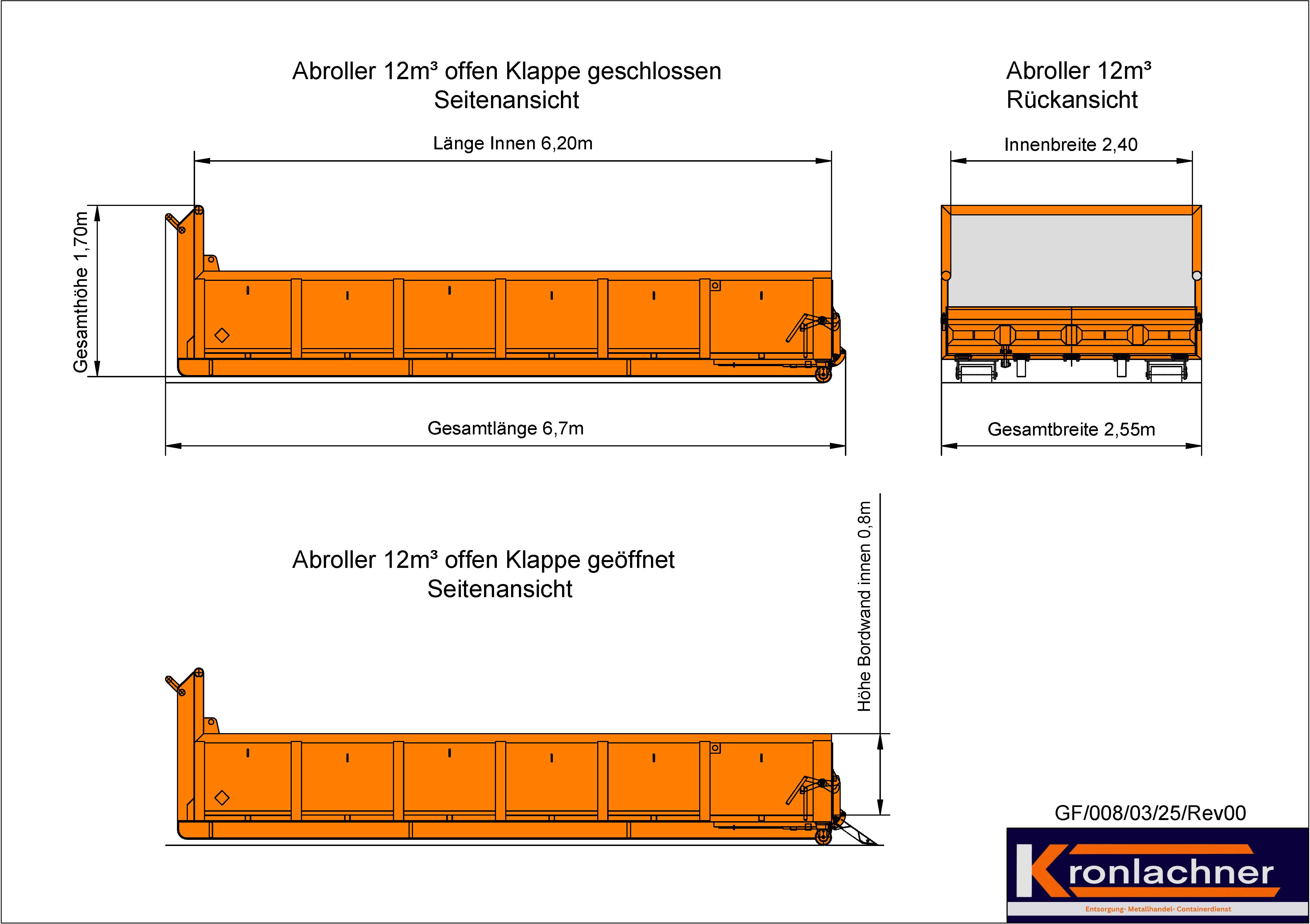 12 m³ Abrollcontainer – viel Volumen, leicht beladbar
